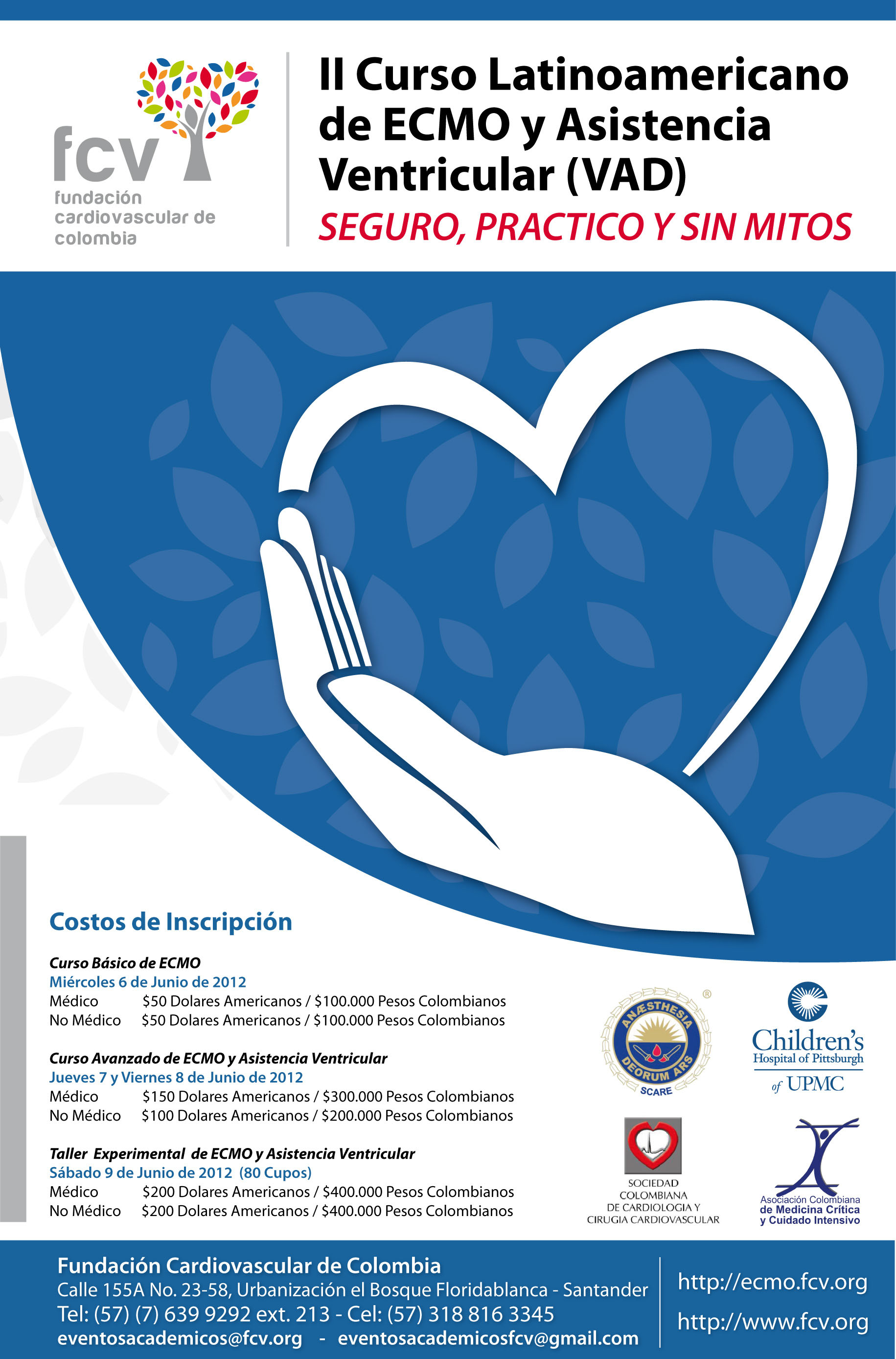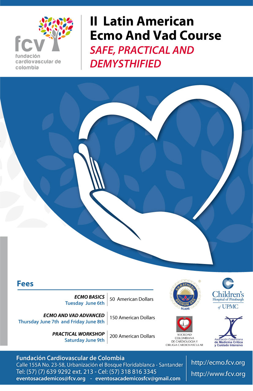 La Fundación Cardiovascular de Colombia está organizando el Segundo Curso Latinoamericano de ECMO y VAD el cual se realizará en Bucaramanga del 6 al 9 de Junio del 2012.
